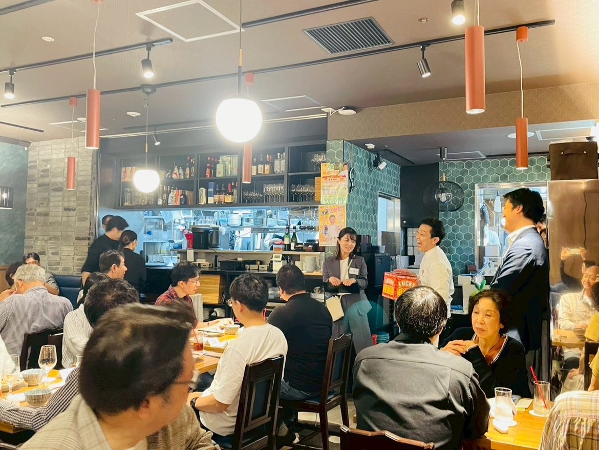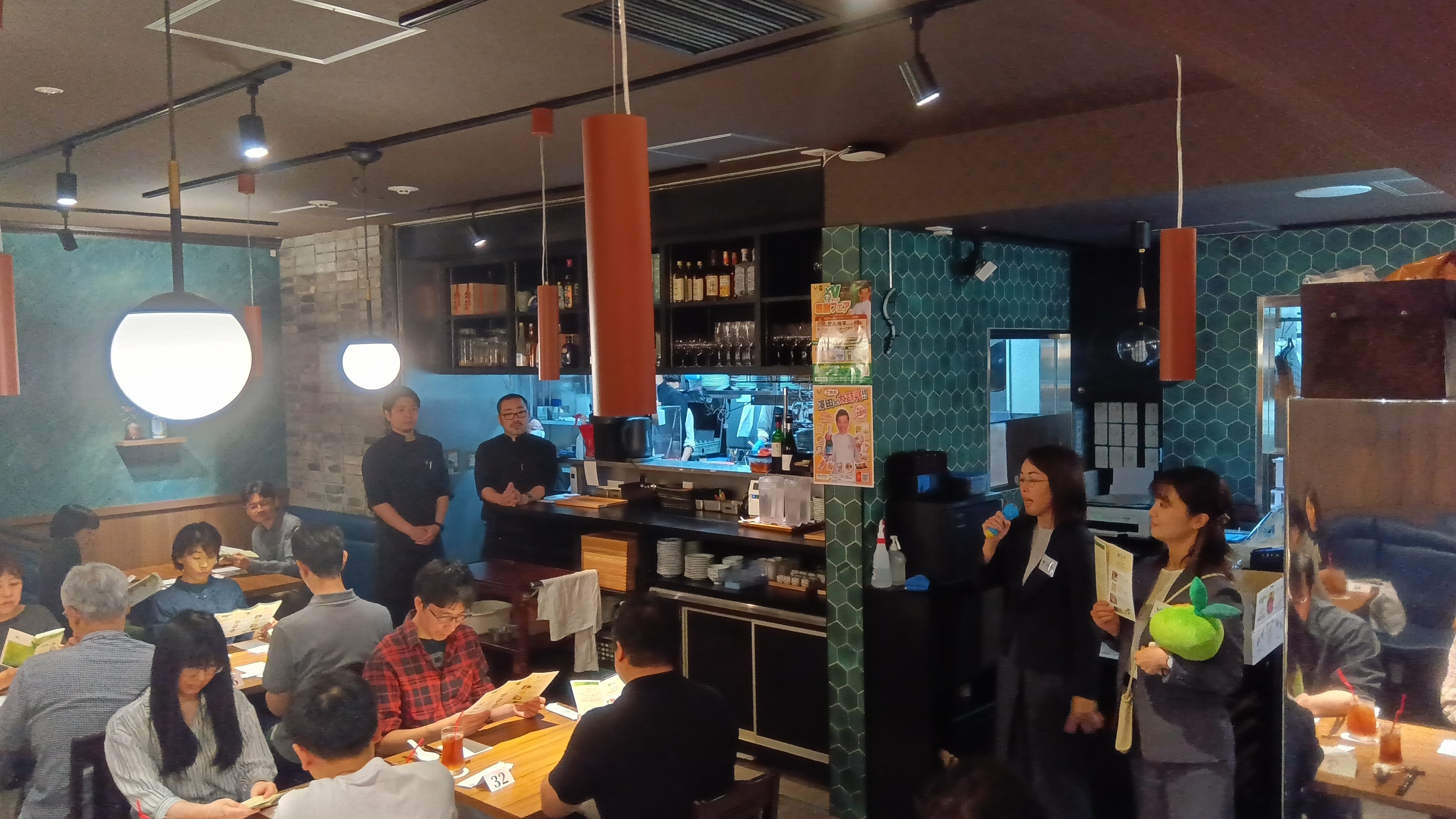 当選者の皆様で店内は満席に。さまざまな加盟社をご利用の方にランダムに着席いただきましたが、隣のお客様と会話を楽しまれていました。