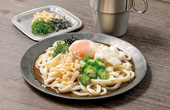 3. 2のうどんをザルにあけて流水で良く冷やす。オクラも流水で解凍する。