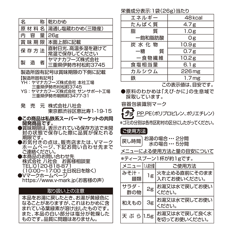 三陸(宮城・岩手)で採取された肉厚でもっちりとした食感が特長のわかめを厳選し使用しました。肉厚ですので、お刺身わかめや酢の物、みそ汁の具等様々な料理にご利用頂けます。
