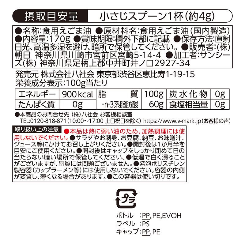 えごま種子を100%使用して、国内精製しています。オメガ3(n−3系不飽和脂肪酸)が含まれています。