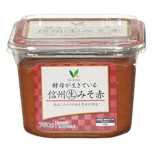 原材料は大豆、米、食塩のみです。アルコール添加や加熱殺菌をしていないので酵母菌が生きたままの「生」タイプです。赤みそ特有の熟成したコクのある旨みが特長で、たっぷり具だくさんの味噌汁などに最適です。