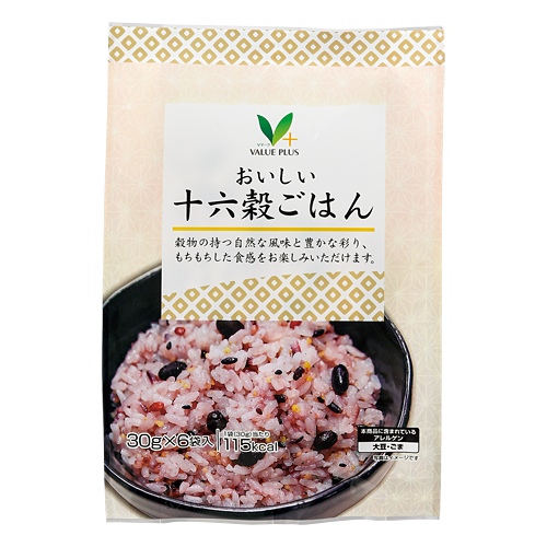 穀物の持つ自然な風味と豊かな彩り、もちもちした食感をお楽しみいただけます。十六種類の穀物をバランス良くブレンドしました。
