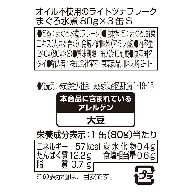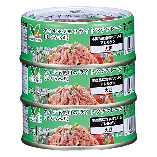 キハダまぐろを使用したオイル不使用のヘルシーなツナ缶です。野菜エキス等を加えて食べやすく仕上げました。サラダのトッピングやパスタの具材としてもピッタリです。タイで製造しています。