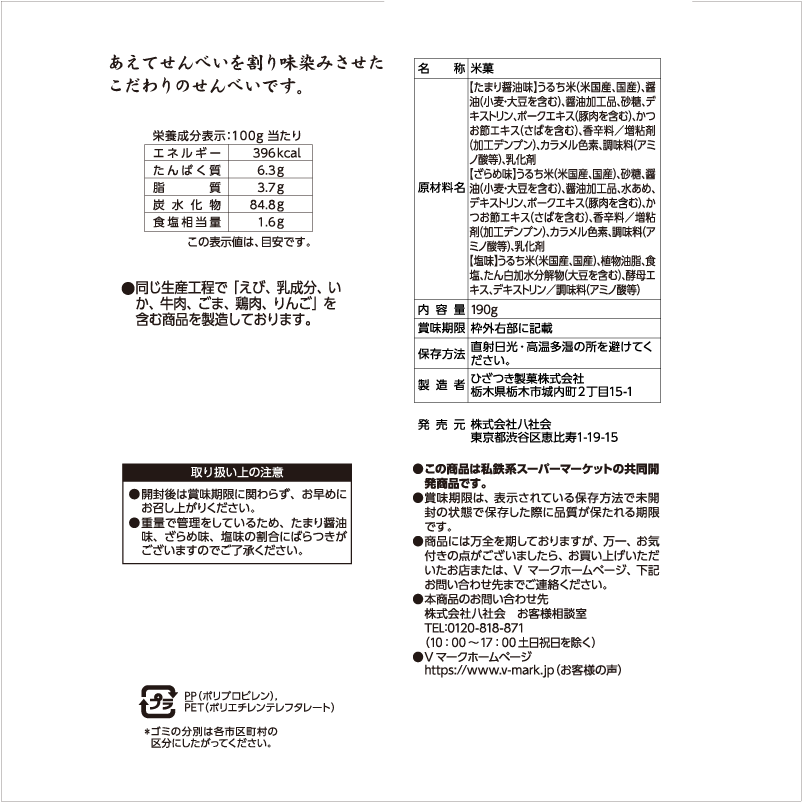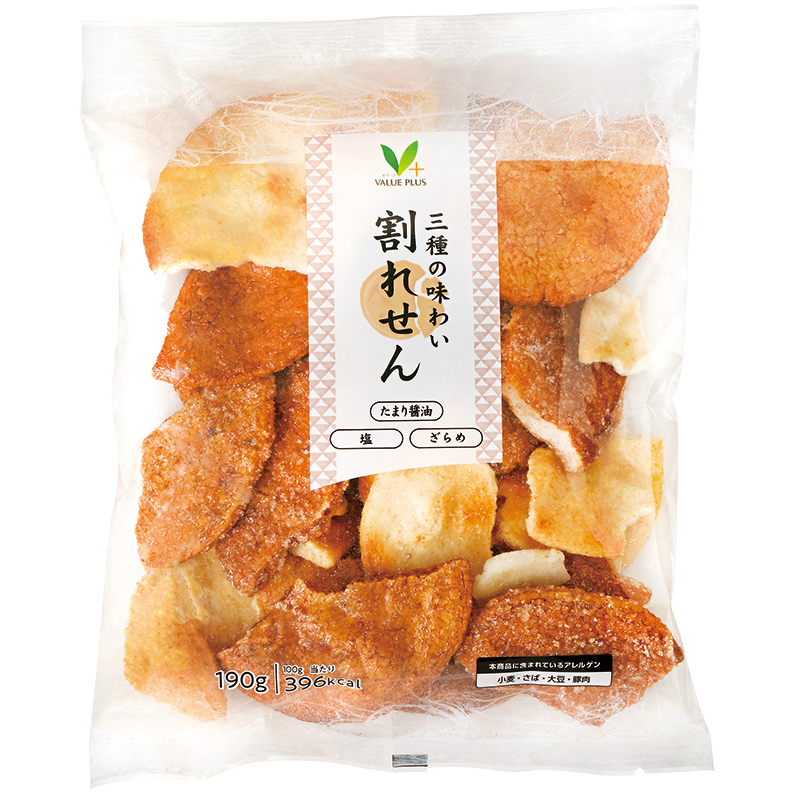 割った煎餅の断面にジュワっとタレを染み込ませ、じっくり乾燥させた深い味わいがあるお煎餅です。醤油の香ばしさが広がる醤油味、旨みの深い塩味、優しい甘みがクセになるざらめ味の三種ミックスです。