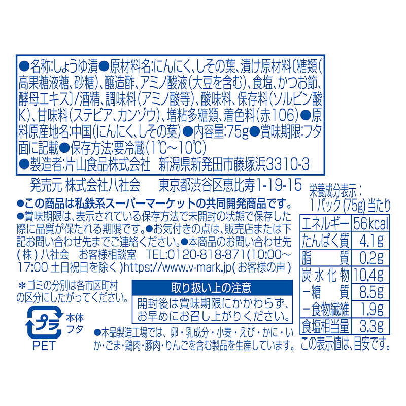 にんにくをシャキシャキとした食感に仕上げました。しそのすっきりとした酸味とかつお節の自然な旨みが感じられます。