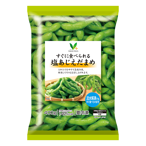 とれたての枝豆を塩ゆでして急速冷凍しました。解凍してそのままお召し上がり頂けます。