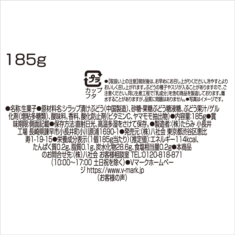 ぷるんとしてみずみずしいゼリーと共にジューシーなぶどう果肉が楽しめます。