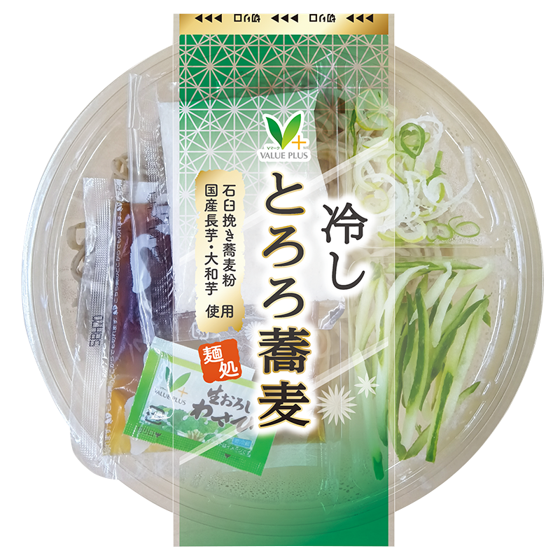 国産長芋と国産大和芋を使用した冷しとろろ蕎麦です。石臼挽きそば粉使用。