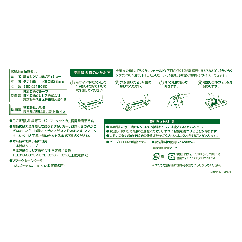 ピュアパルプ100%のお肌にやさしいやわらかティシューです。