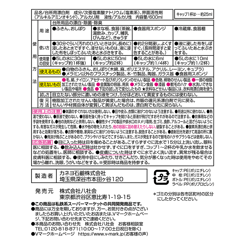 お台所用品の漂白、除菌、除臭に。台所洗剤ではおちにくいふきんのシミ、茶シブ、プラスチック容器の黒ずみをきれいにおとします。
