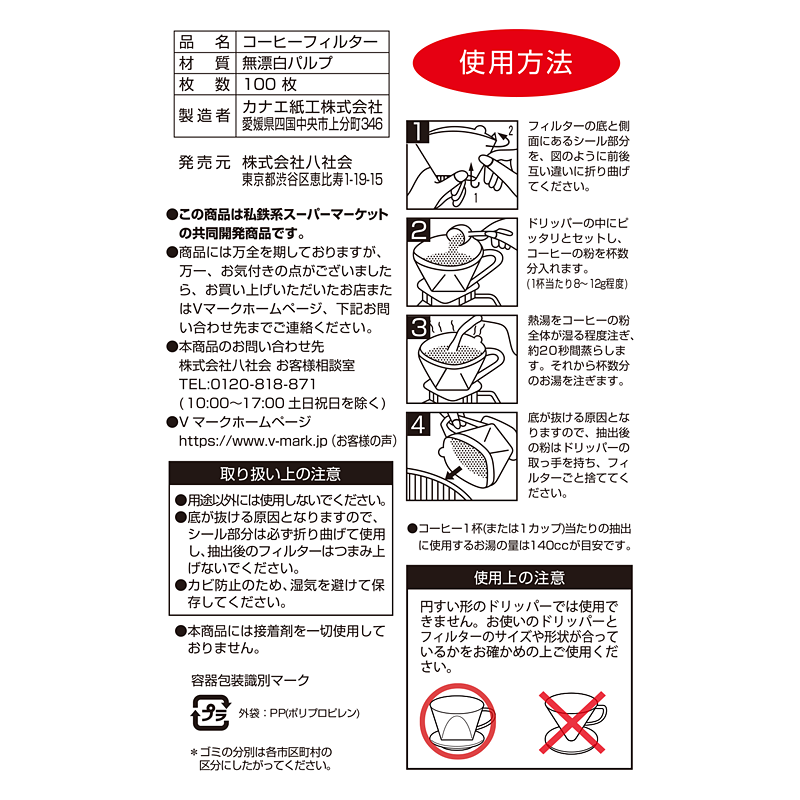 100%無漂白バージンパルプを使用した開きやすい耳つきタイプのコーヒーフィルターです。コーヒー本来の味と香りをお楽しみください。