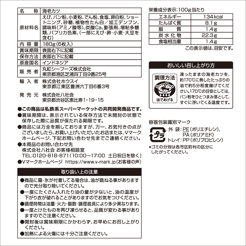 海老の食感が楽しめる海老カツです。お弁当やサンドイッチにおすすめ。
