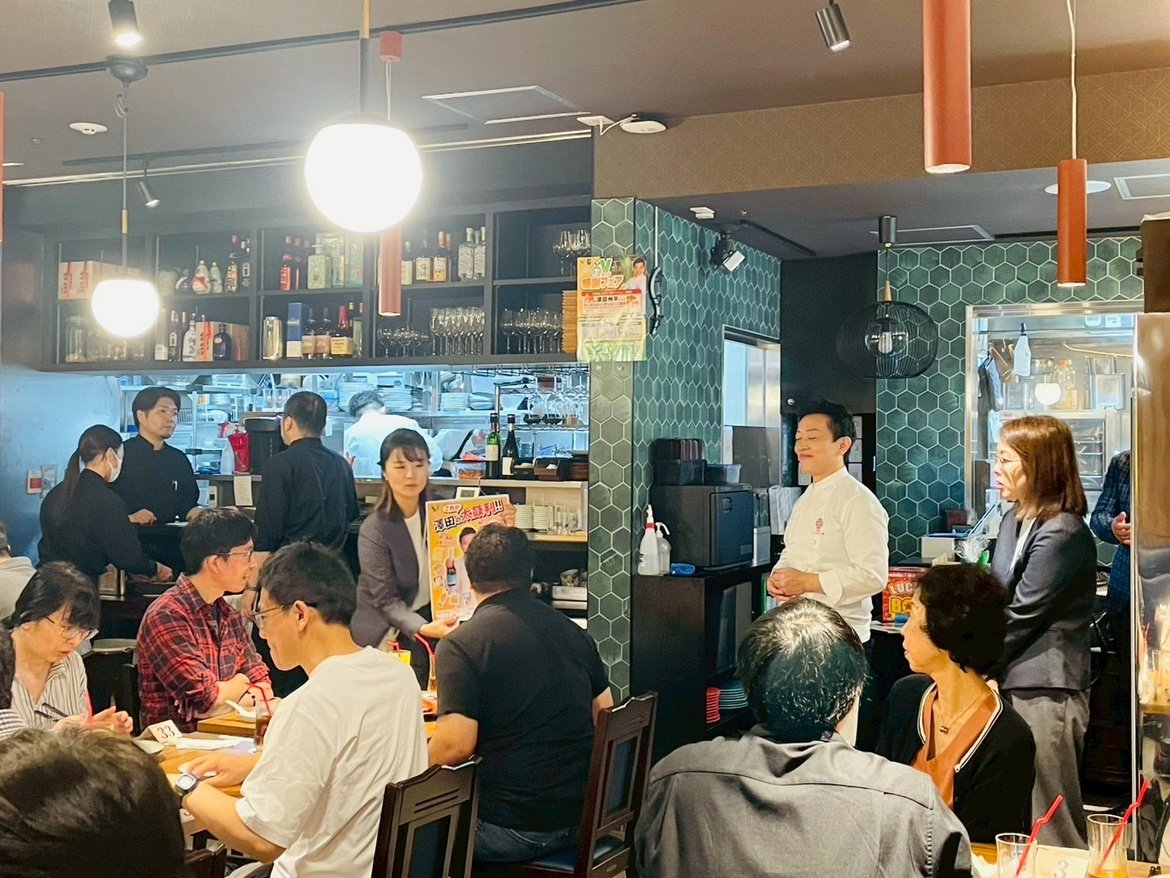 当選者の皆様で店内は満席に。さまざまな加盟社をご利用の方にランダムに着席いただきましたが、隣のお客様と会話を楽しまれていました。