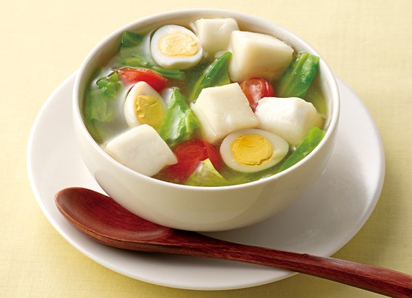 キャベツ 葉1枚ミニトマト 3個大判はんぺん 1/2枚うずら卵水煮 3個コンソメ(固形) 1個水 300ml白こしょう 少々