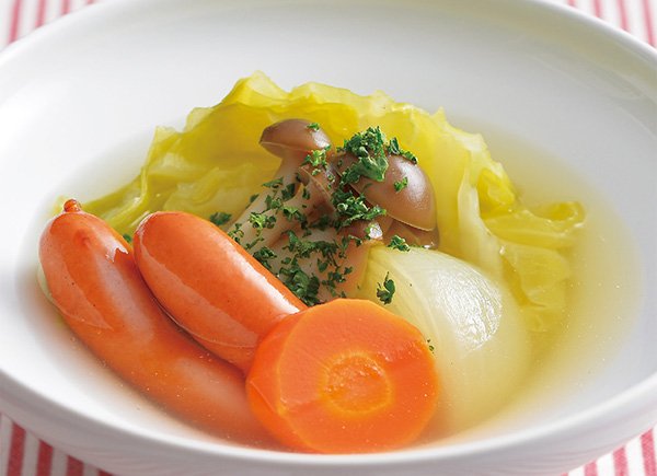 春キャベツとウインナーのスープ