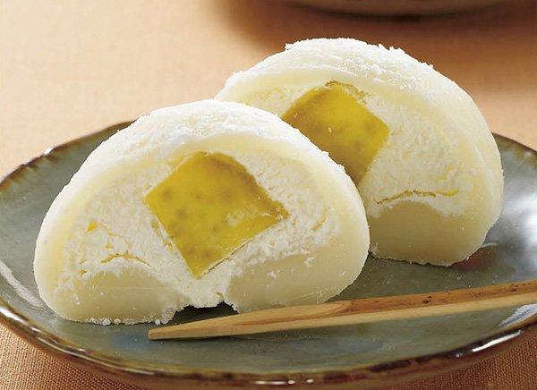 旬のさつまいもとホイップクリームを組み合わせた大福。さつまいもはホクホク感を楽しむため、つぶさずに大きめにカットしたものを使用します。電子レンジのみで作る簡単和菓子です。