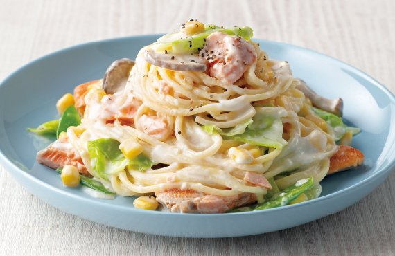 鮭とキャベツのクリームパスタ