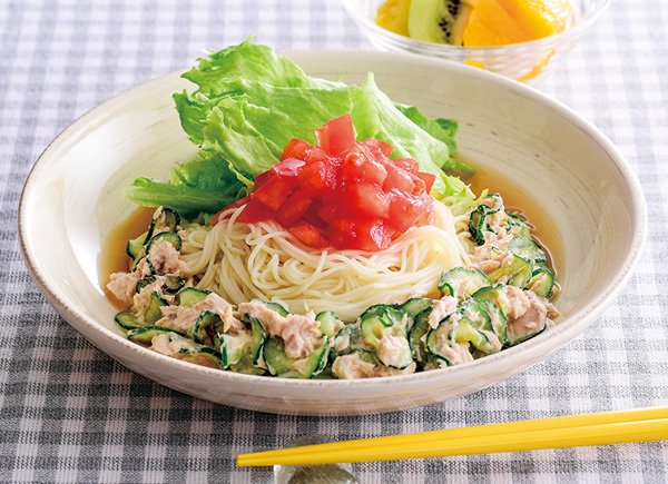 5. たっぷりの湯を沸かし、そうめんを茹でる。茹で上がったら冷水でしめ、水気を切って器に盛り付ける。