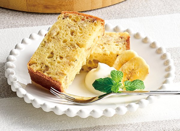 4. 型から取り出し、粗熱が取れたら切り分け、お好みでホイップ、ミントの葉などを一緒に器に盛り付ける。※冷めて硬くなった場合は、少し温めていただくとふんわりします。